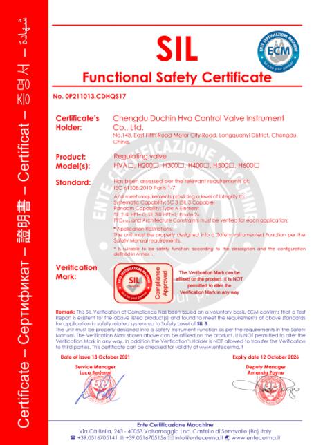 公司产品通过了IS09001: 2016国际质量管理体系认证、TSG特种设备制造质量保证体系认证、SIL认证。